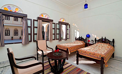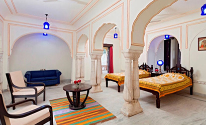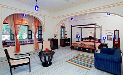 Maharani Suites are the penultimate luxury hotel rooms at Dhulagarh with 24 hours room service, a minibar, and many more amenities. Unlike the other suites, it is decorated in white and red, the colour of love.